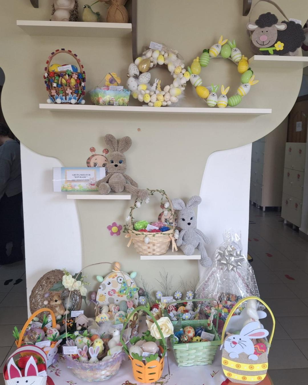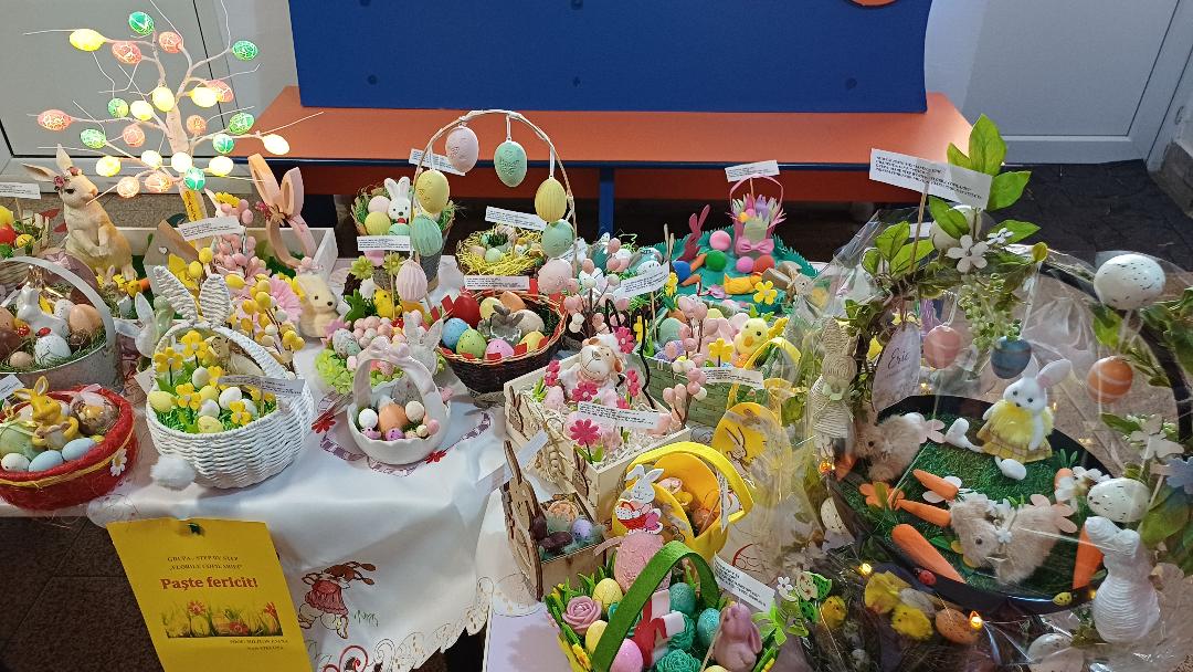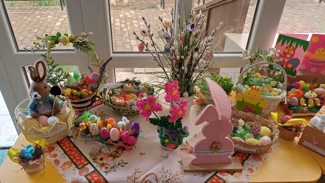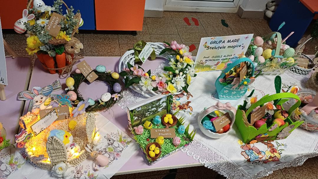 Copiii, părinții și doamnele educatoare, ca-n fiecare an, au jertfit răbdare, timp și talent pentru a realiza variate și deosebite aranjamente de ouă încondeiate și felicitări, utilizând diferite tehnici, dând dovadă de creativitate, originalitate și dăruire.