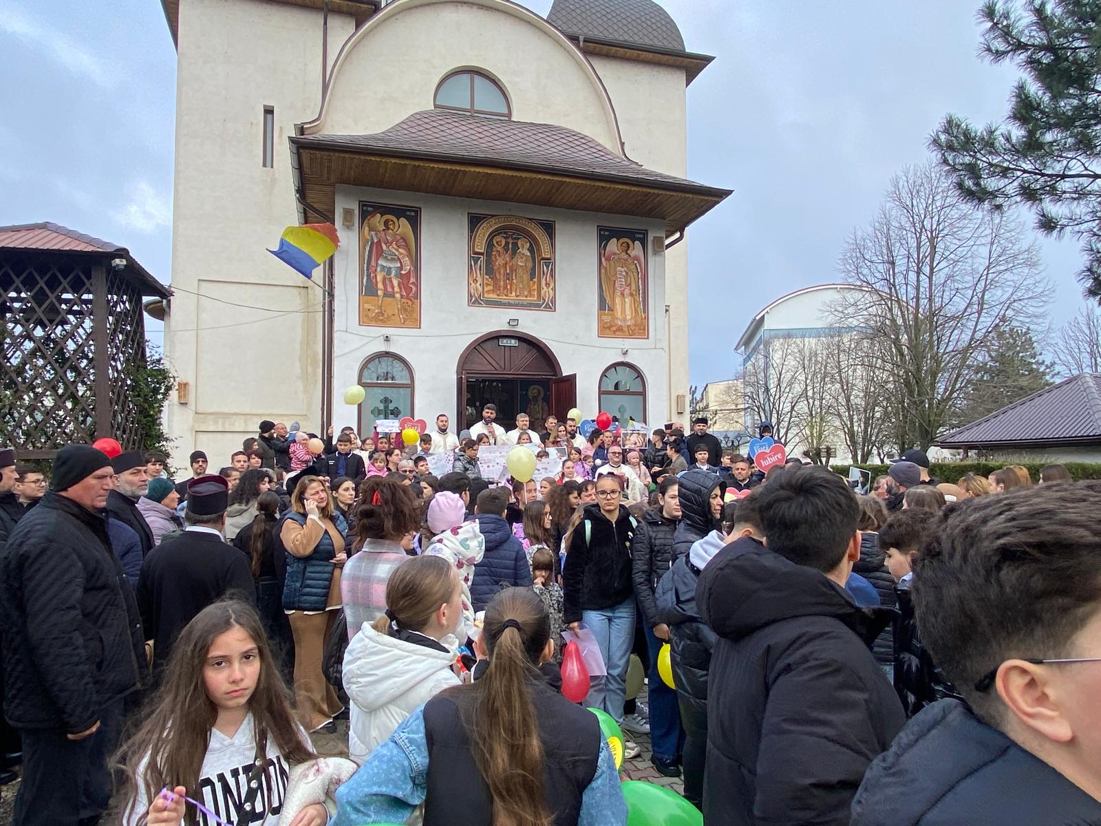 Programul a debutat cu slujba de binecuvântare a copiilor, oficiată în interiorul sfântului locaș, moment de profundă emoție și rugăciune pentru ocrotirea celor mici. Părintele protopop Aurel Berbec a dat citire cuvântului pastoral al Preasfințitului Părinte Vincențiu, dedicat acestei zile, subliniind importanța sprijinului acordat mamelor aflate în dificultate și necesitatea solidarității întregii comunități.