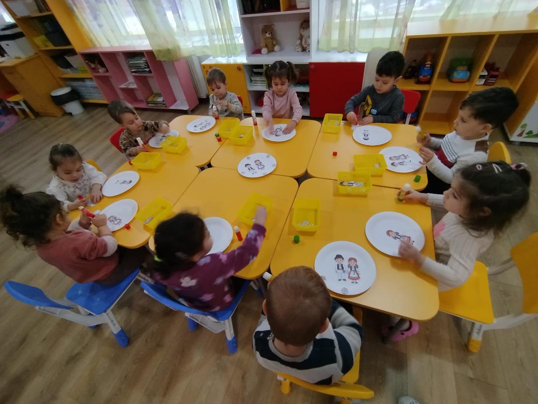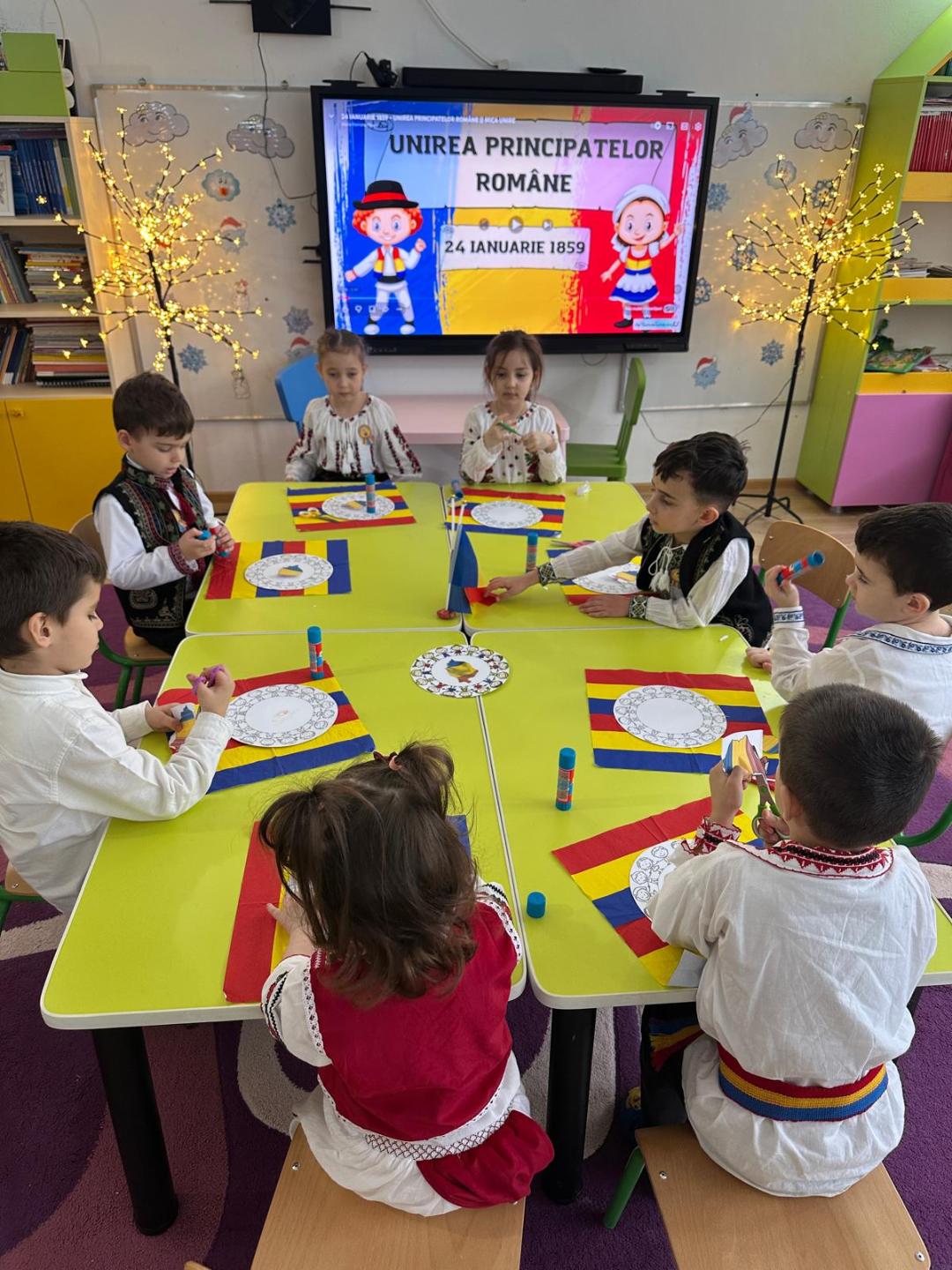 La întâlnire au participat părintele Dumitru Ionuț de la Parohia Orboiești și asistentul social Anastasia Pătrașcu, care i-au îndemnat pe copii să-și iubească țara, să rămână uniți și să fie mândri că sunt români. De asemenea, părintele le-a prezentat informații despre importanța zilei de 24 ianuarie 1859. Apoi, copiii, susținuți de doamna directoare Nan Steluța și de doamnele educatoare, ne-au încântat cu dibăcia și priceperea lor: au pictat linguri de lemn, au decorat tricolorul și harta țării, au lipit și realizat ia noastră tradițională, au ascultat cu drag imnul unirii, poezia „Hora Unirii”, compusă de Vasile Alecsandri, și au dansat.