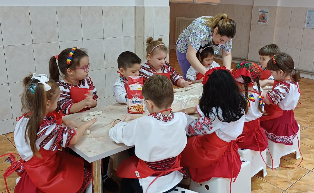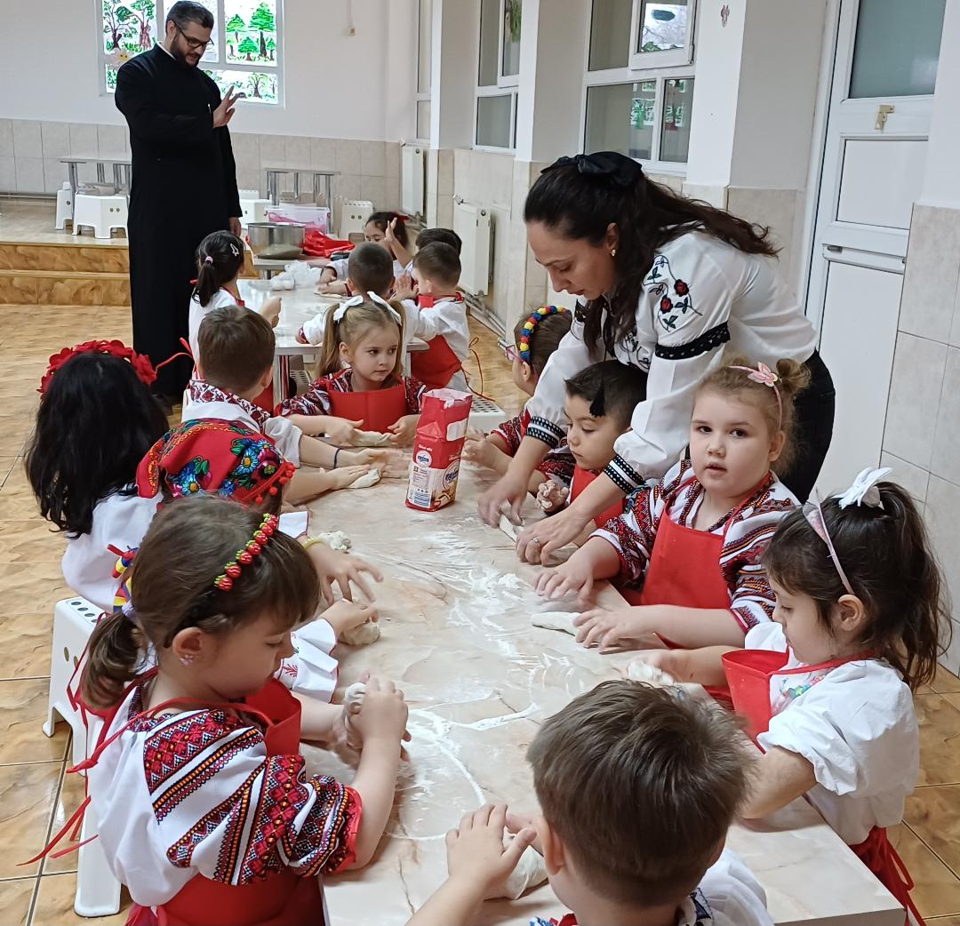A urmat partea practică a activităţii când toți cei prezenți, coordonați de doamna directoare Nan Steluța și de doamnele educatoare, au pus grâu la încolțit și au împletit colăcei. Protopopiatul Slobozia a răsplătit dibăcia micilor creștini oferindu-le produse dulci, iar doamnele educatoare produse de panificație.
